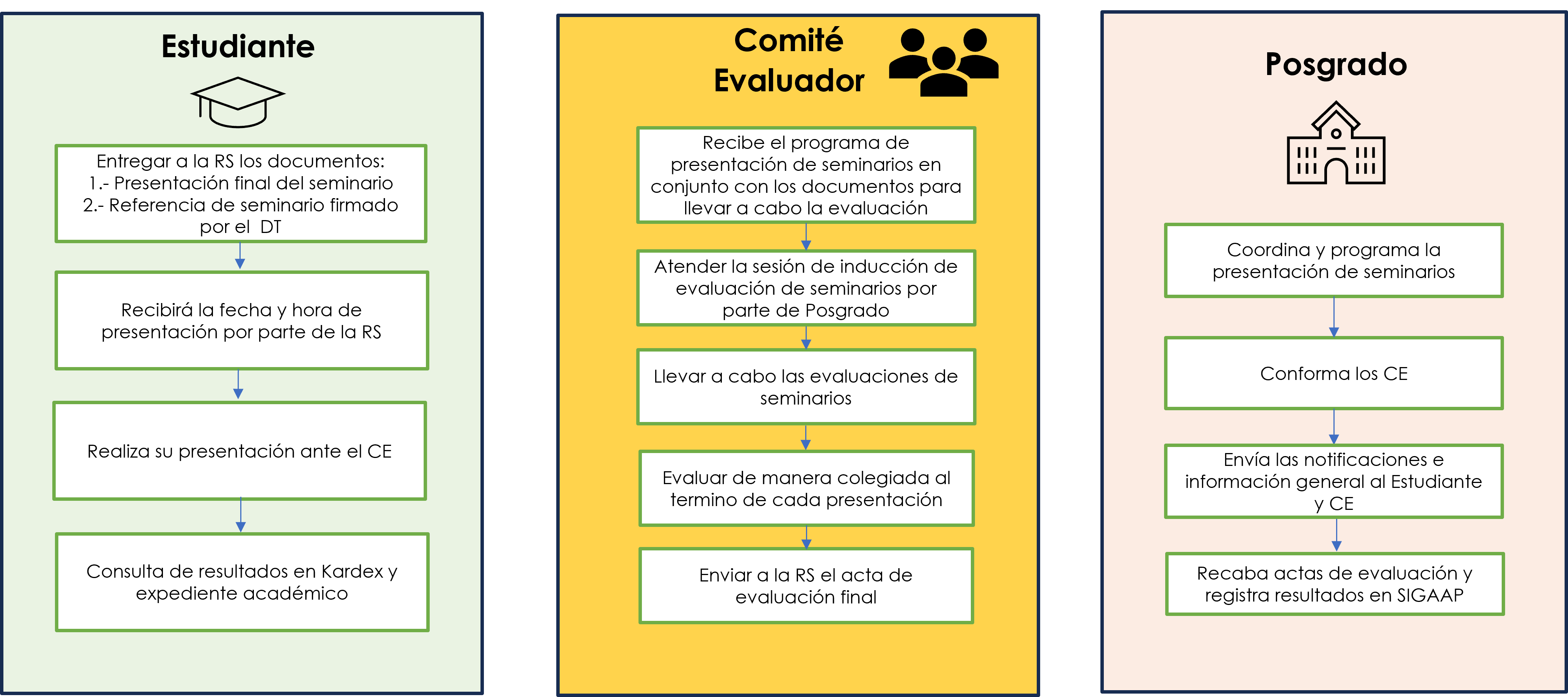 SEMINARIO 1 » Formato de Acta de evaluación. SEMINARIO 2 » Formato de Acta de evaluación.SEMINARIO 3 » Formato de Acta de evaluación.» Actividades complementarias para contribución al posgrado. SEMINARIO 4 » Formato de Acta de evaluación. » Publicación autorizada por el Centro de Información. » Actividades complementarias para contribución al posgrado. SEMINARIO 5 » Formato de Acta de evaluación.» Publicación autorizada por el Centro de Información. » Carta de Satisfacción del proyecto.(Obligatorio) » Actividades complementarias para contribución al posgrado. |